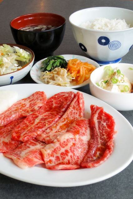 [定食]和牛カルビ、ハラミ、欲張り(カルビ・ロース・塩タン)、豚カルビ、豚ロース、ビビンバ