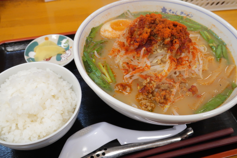旨辛の満州ラーメンに特製ぎょうざと半ライスを組み合わせて食べてきました。