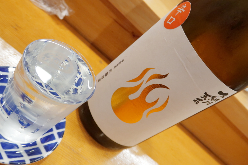 横手市大森町 大納川の天花 特別純米 無濾過生原酒 辛口 炎ラベル。