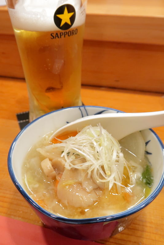 お通しは、塩スープ餃子。