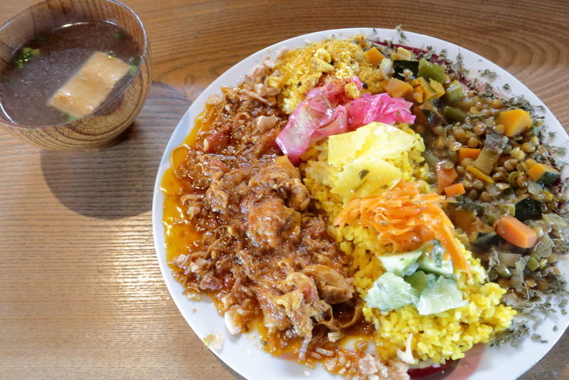 日替わりランチプレートのあいがけカレープレートと豆乳ほうじチャイを楽しんできました。