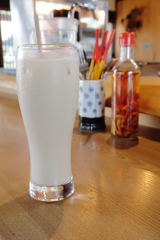 カレーで胃腸から熱が放出されている状態へ、冷たい豆乳ほうじチャイを投入、、、