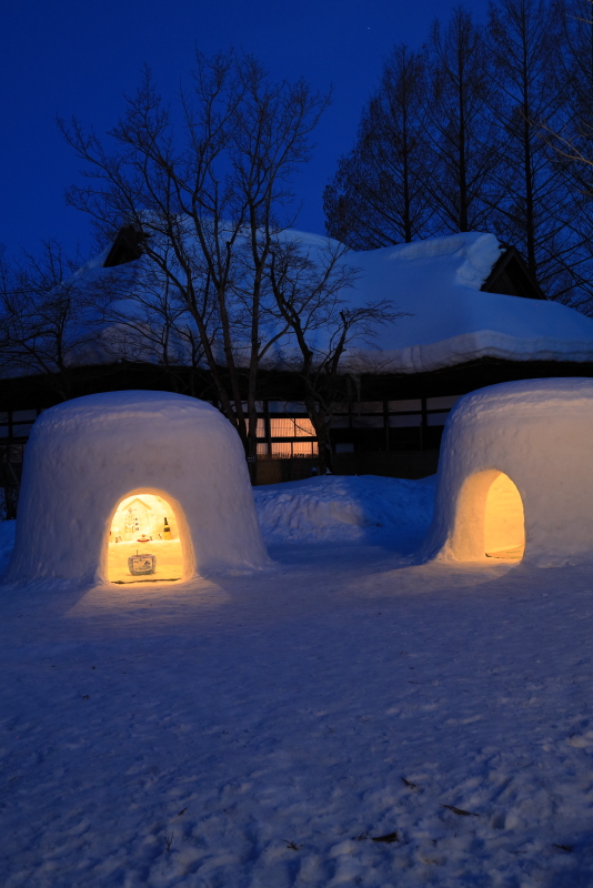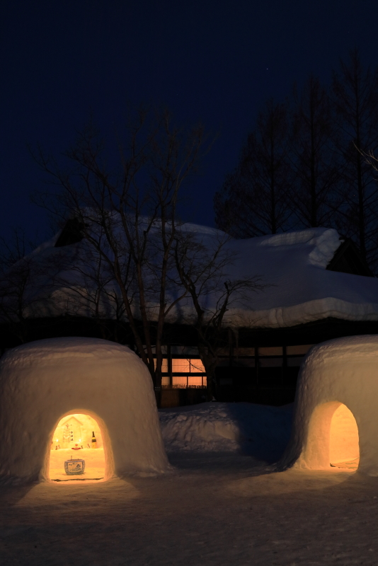 萱葺き民家とかまくらの組み合わせは雰囲気満点。