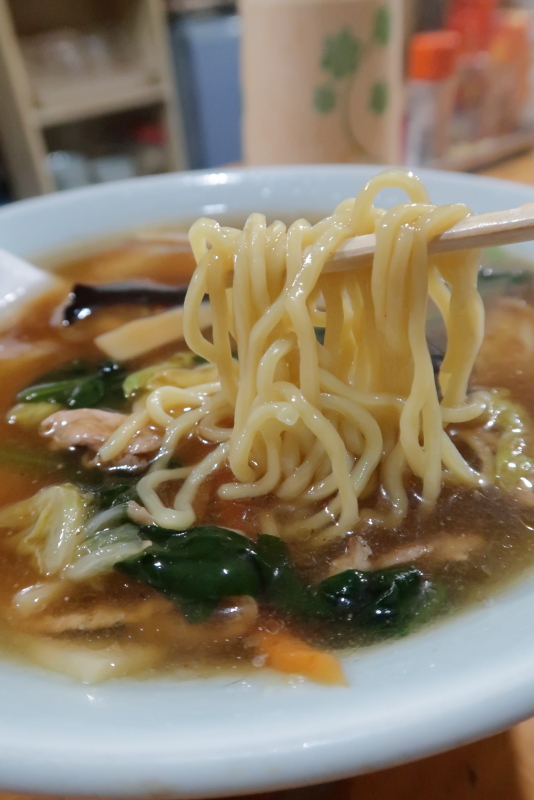 鶏ガラ系のあっさり醤油スープが飲んだあとのカラダにしみる。