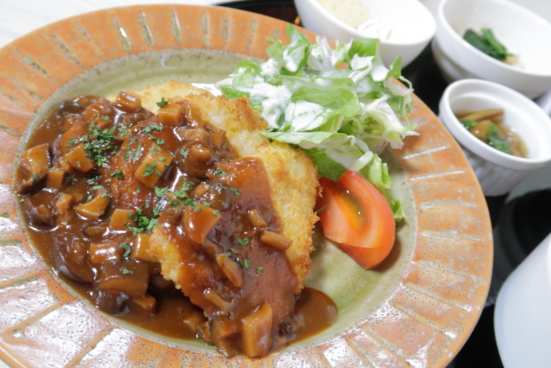 シイタケなどのキノコたっぷりのデミグラスソース。